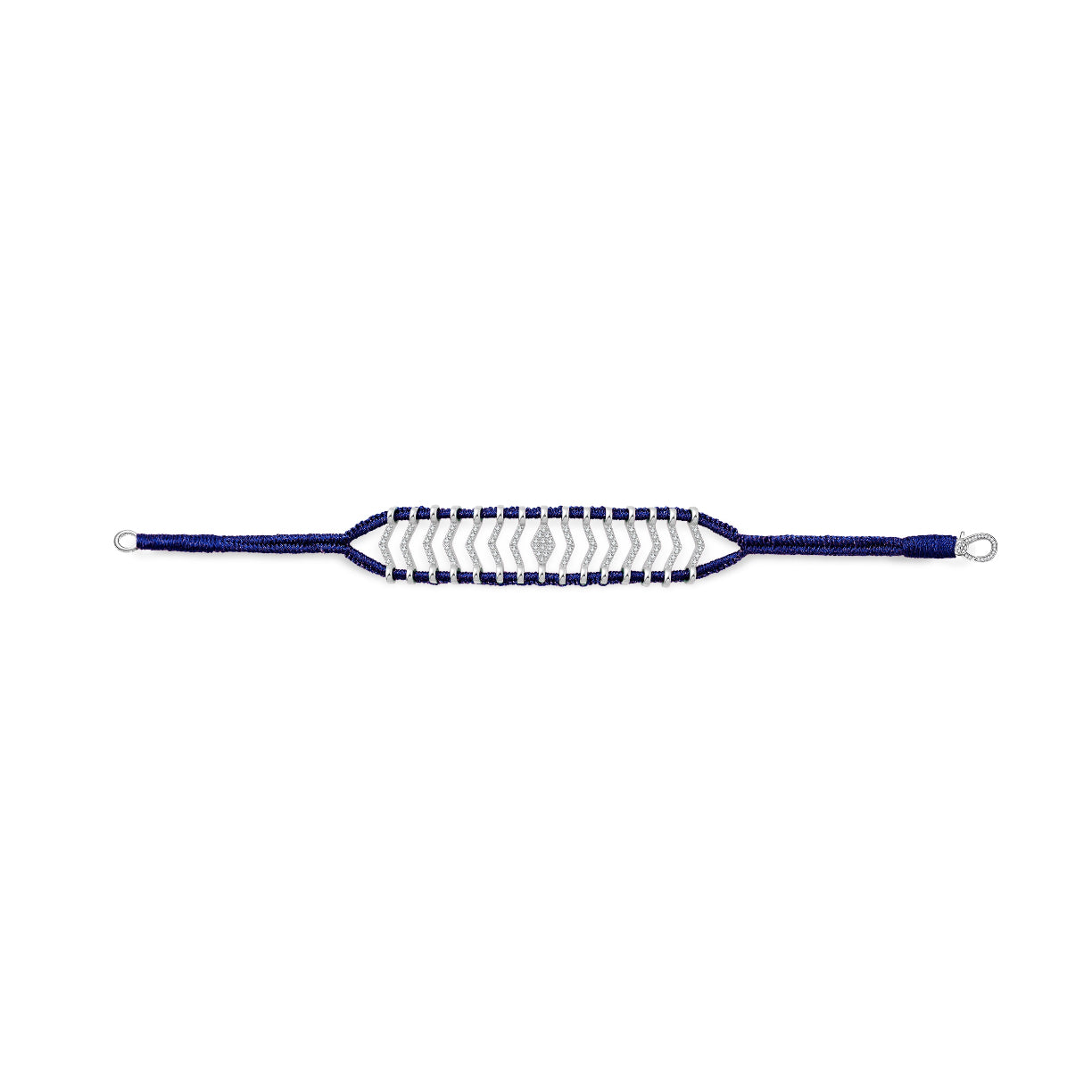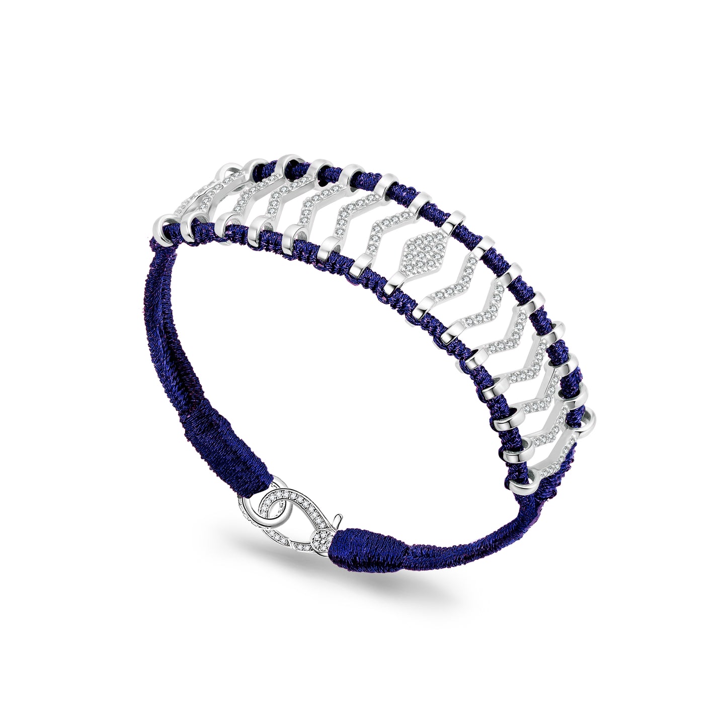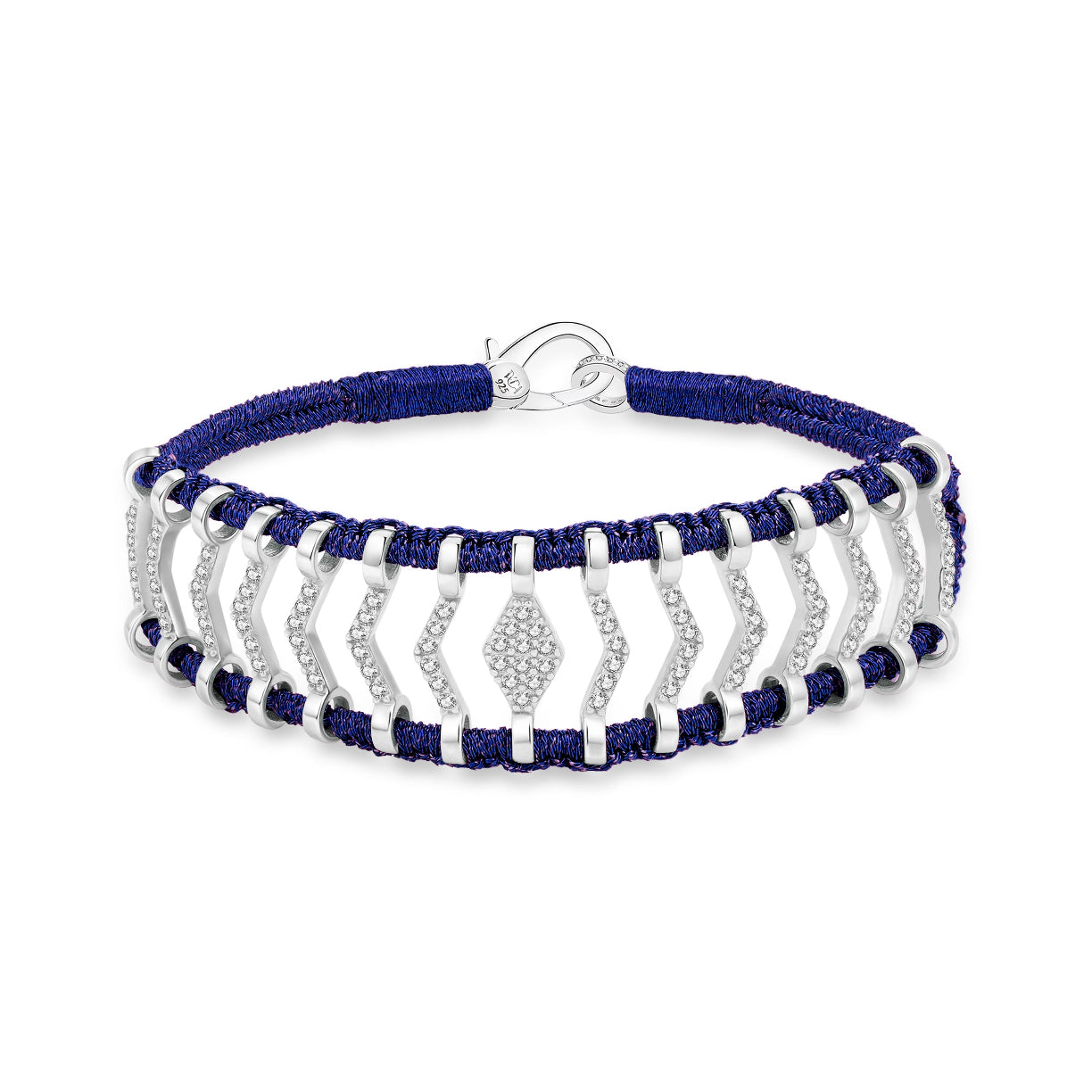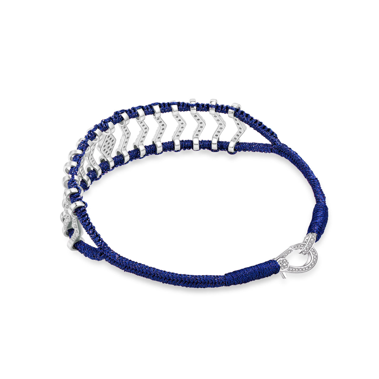 Bracelet fin en fil de lurex tressé de couleur night, décoré d’un motif en argent 925 et serti de moissanites.