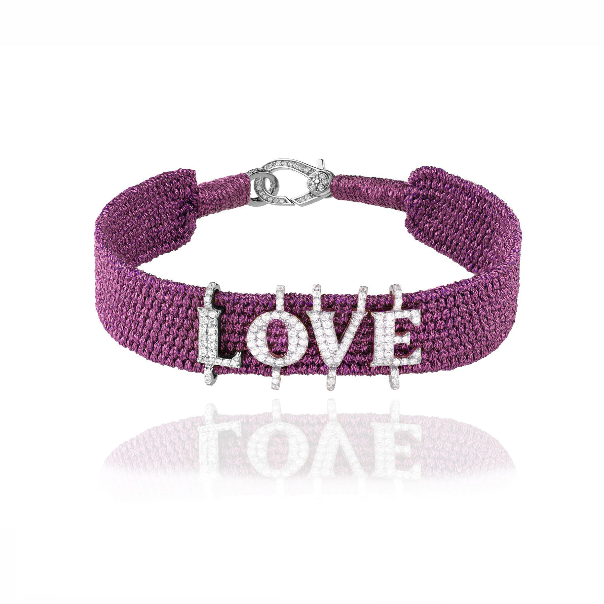 Nos Bracelets tressés ont été créés comme des talismans porte bonheur. Le mot LOVE  en Argent serti de multiples moissanites, est tressé dans la trame du bracelet. Une pièce à l'allure définitivement précieuse qui délivre un message d'amour universel. Vous pouvez également créer votre propre bracelet en faisant appel notre service de personnalisation. Créez le bijou qui vous ressemble avec un prénom, une émotion....