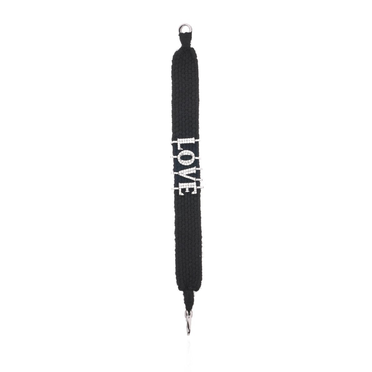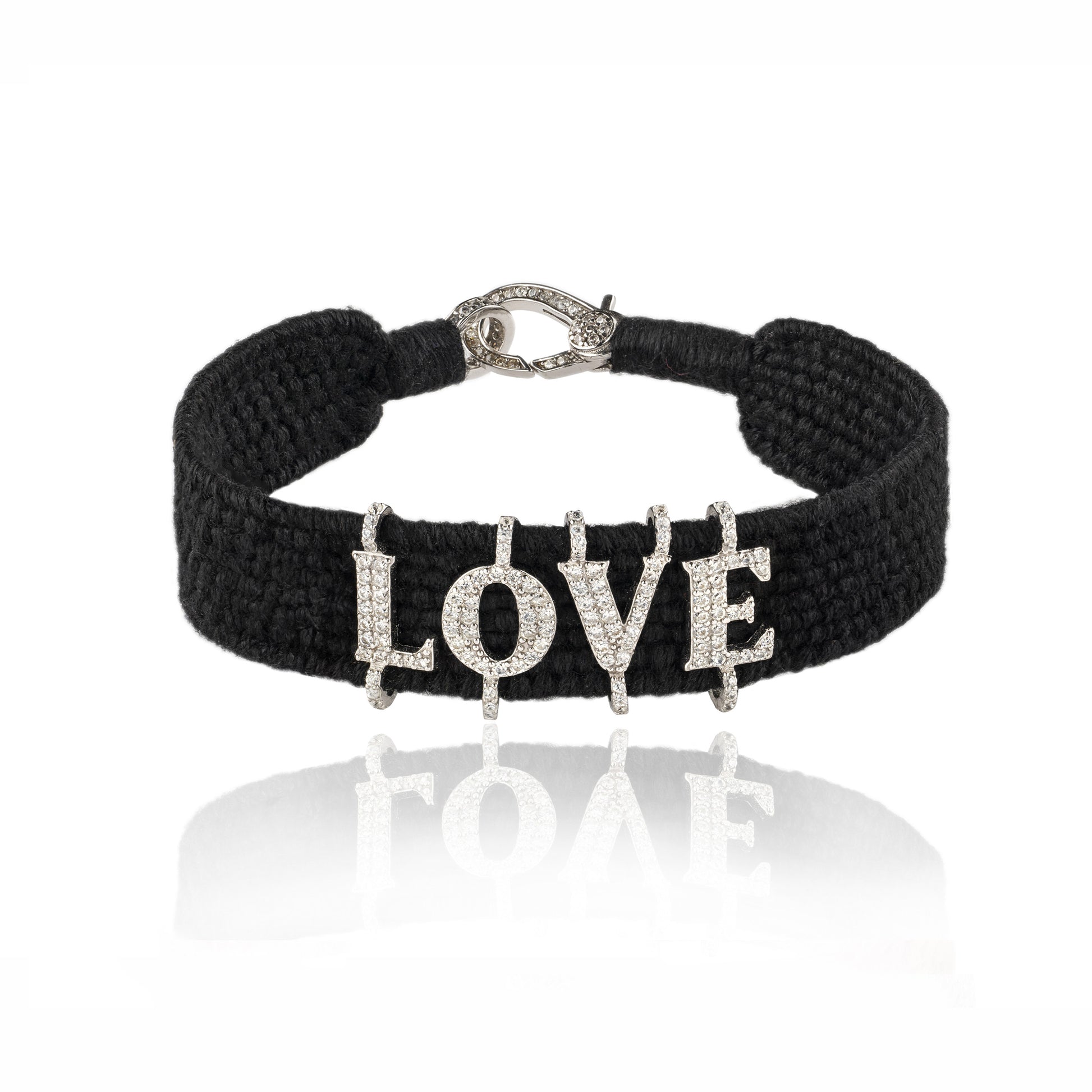 Nos Bracelets tressés ont été créés comme des talismans porte bonheur. Le mot LOVE en argent 925 serti de multiples moissanites, est tressé dans la trame du bracelet.