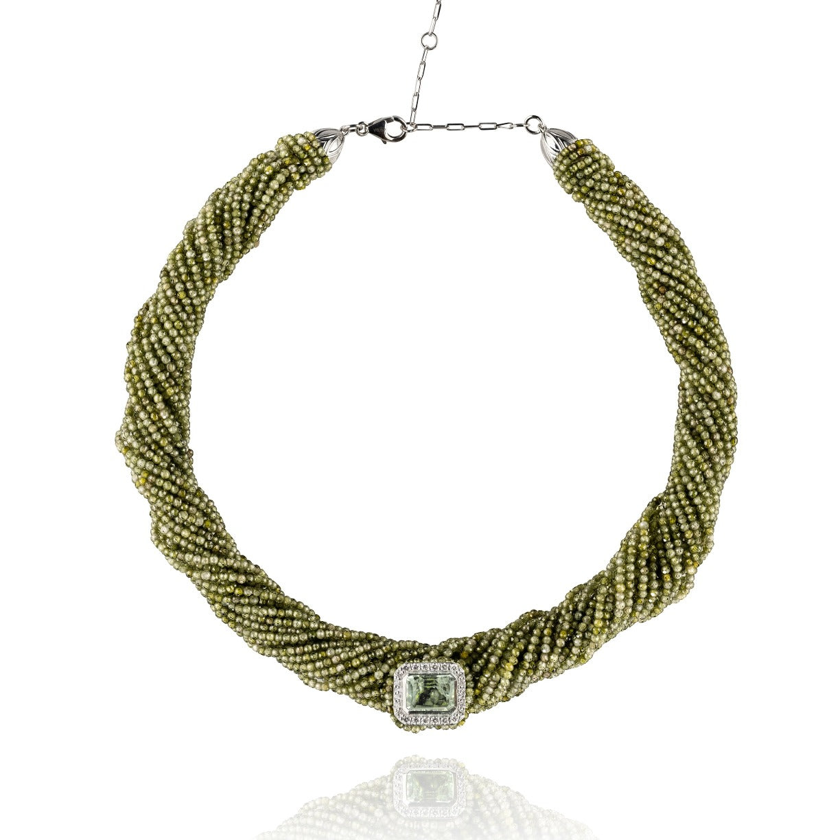 Perles en pierre d'Amazonite, Cristal, argent 925 et diamants