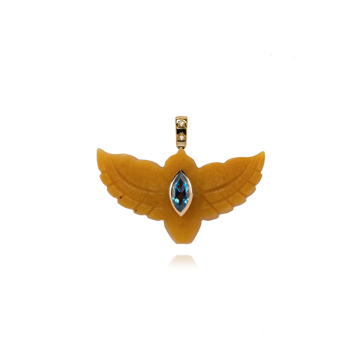 Pendentif représentant un aigle en Aventurine, topaze, diamants et or 14 carats.